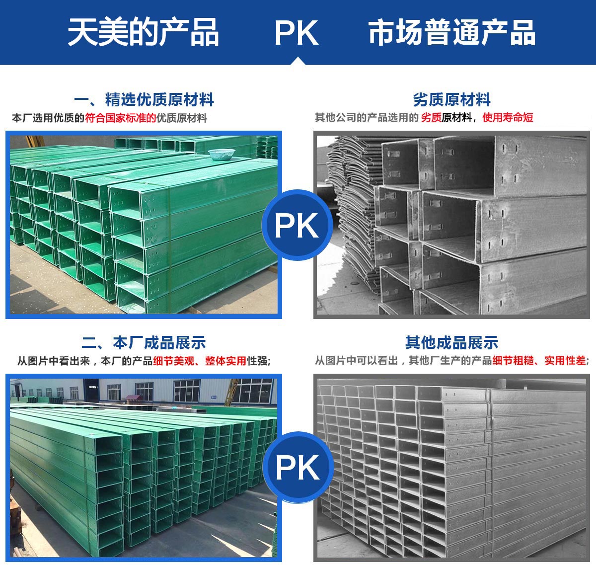 本公司主要產(chǎn)品有玻璃鋼電纜橋架、酚醛樹(shù)脂橋架、玻璃鋼除霧器、輪廓樁、防腐檁條、污水池蓋板、模壓化糞池、方形冷卻塔、圓形冷卻塔、RTM真空導(dǎo)入產(chǎn)品、熄焦塔除塵裝置等,公司設(shè)備較優(yōu)良,技術(shù)力量強(qiáng),工人操作水平高,能夠獨(dú)立的進(jìn)行玻璃鋼產(chǎn)品的制造和設(shè)計(jì)、適用于各大工程的建設(shè)。